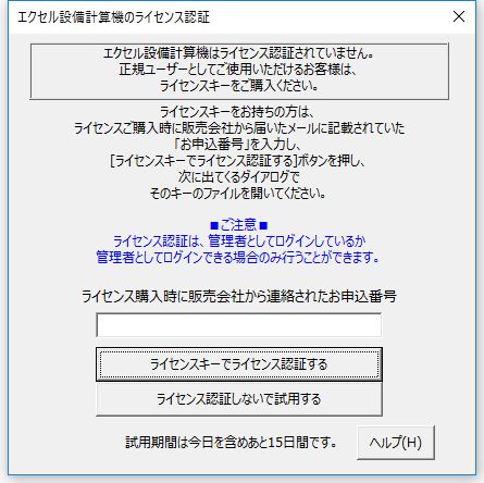 エクセル設備計算機のライセンス認証